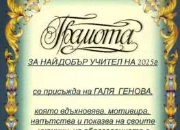 Ученици от 11 клас връчиха грамота на своята класна ръководителка