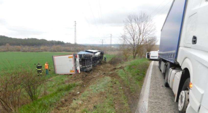 Затрудненията ще продължат, докато камионът от катастрофата не бъде изтеглен от крайпътните ниви.